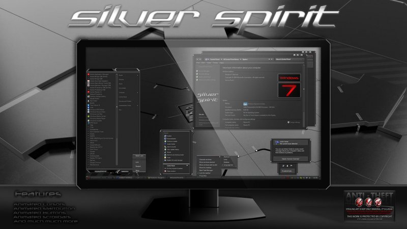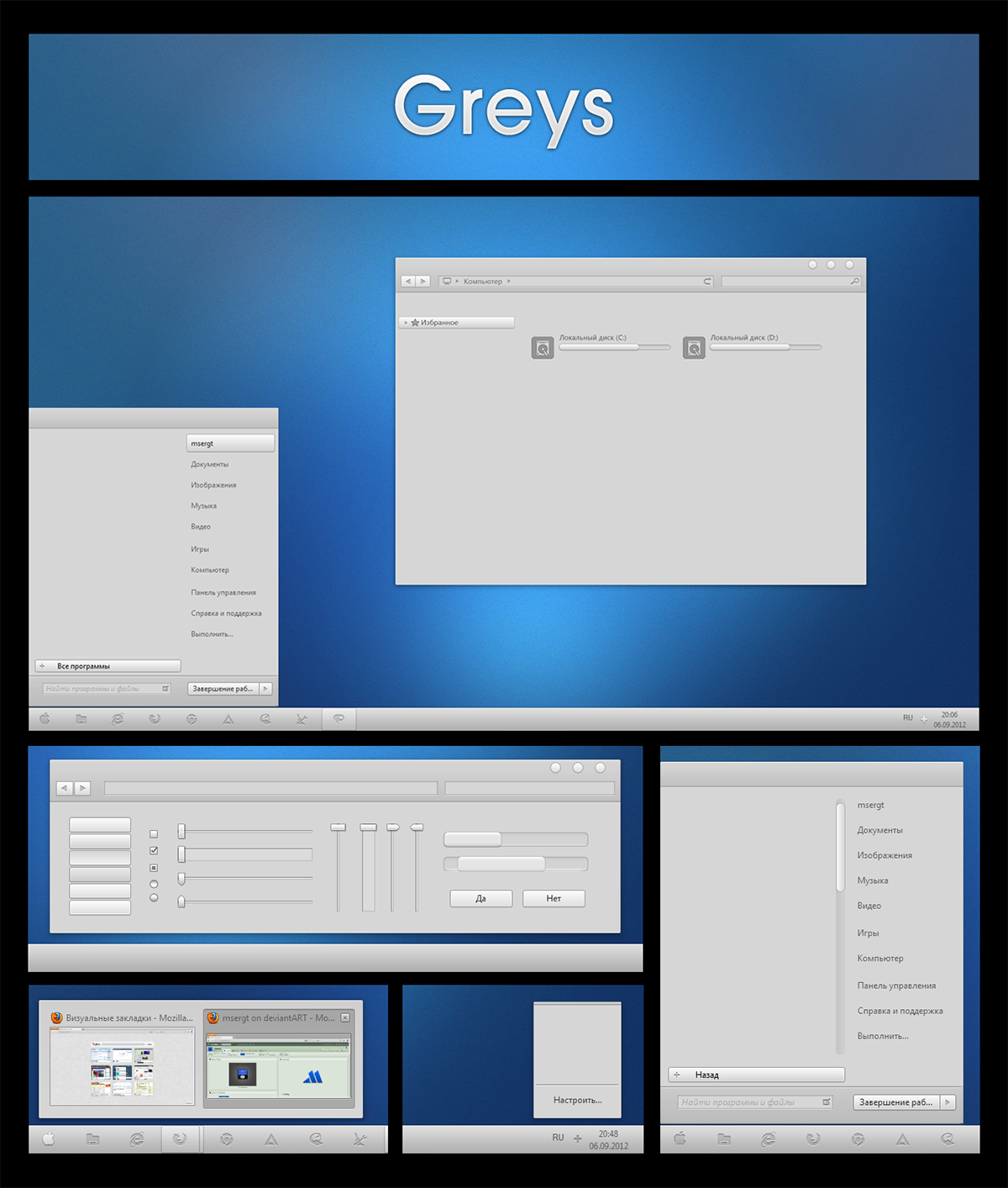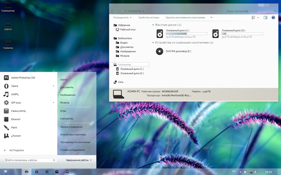 Минималистическая тема оформления для Windows 7, выполнена в светлом тоне, где основным цветовым фоном является серый.