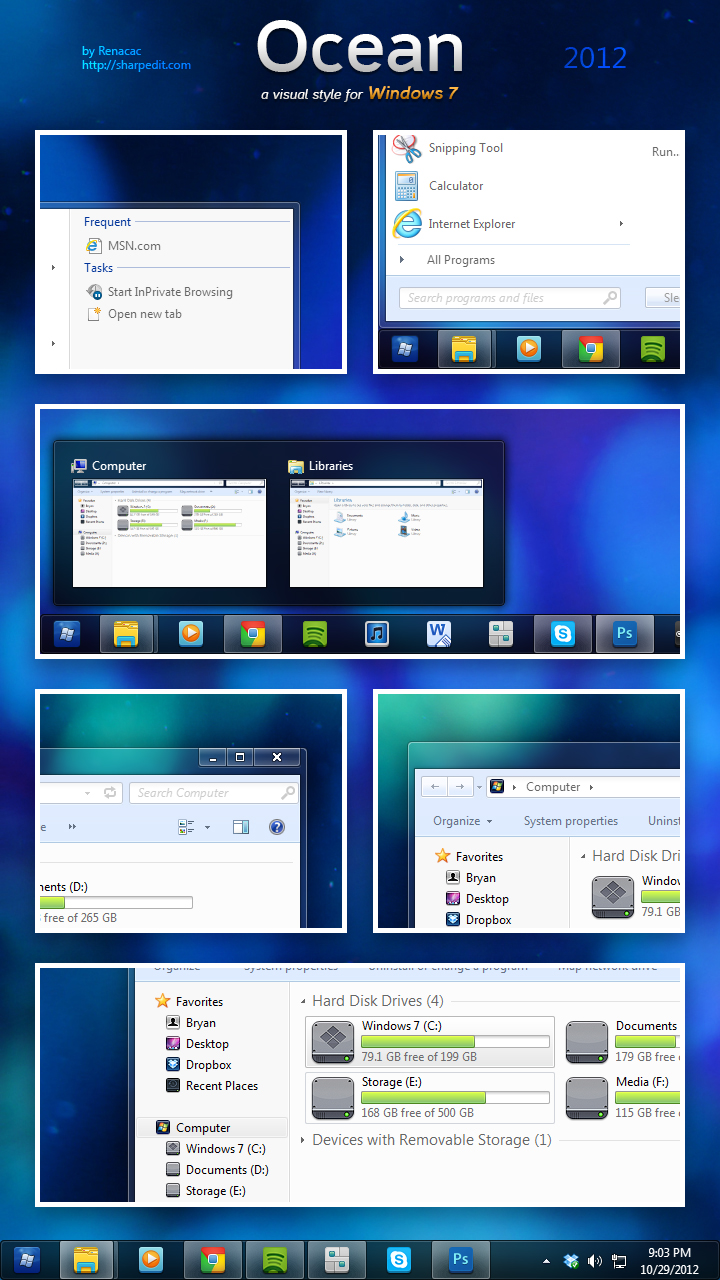 Тема под названием «Ocean» украсит ваш рабочий стол в сине-голубые цвета океана.