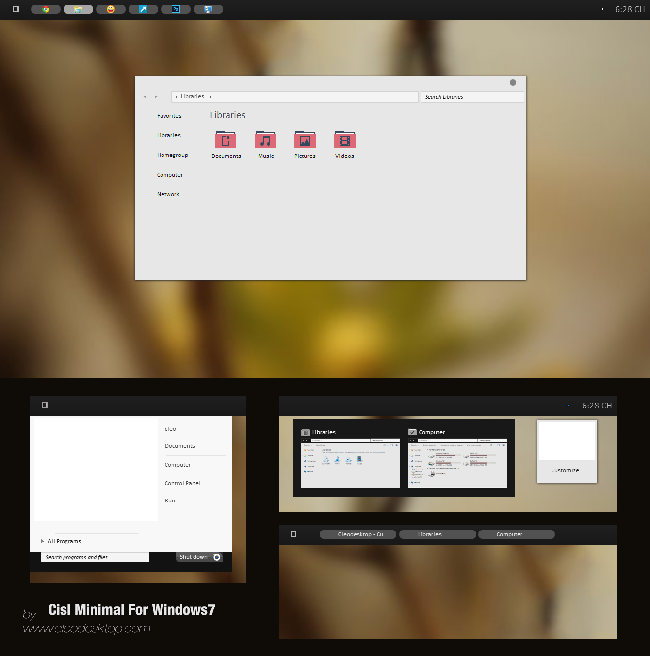 Минималистическая тема для Windows 7 с уникальным интерфейсом.